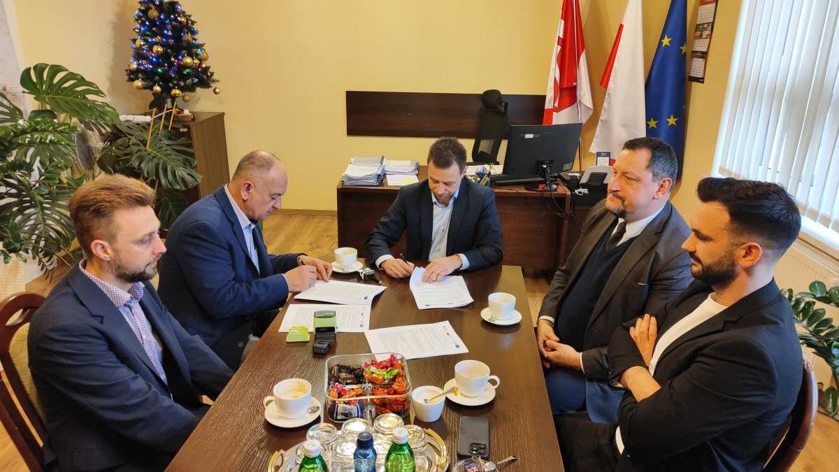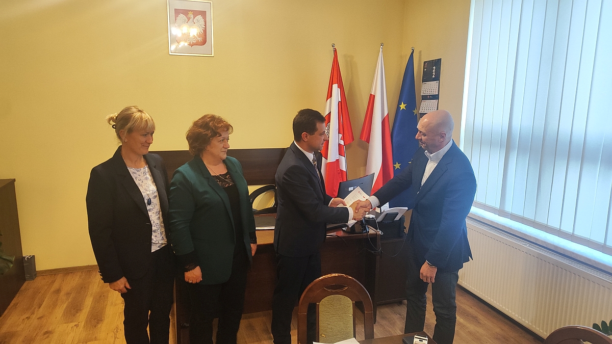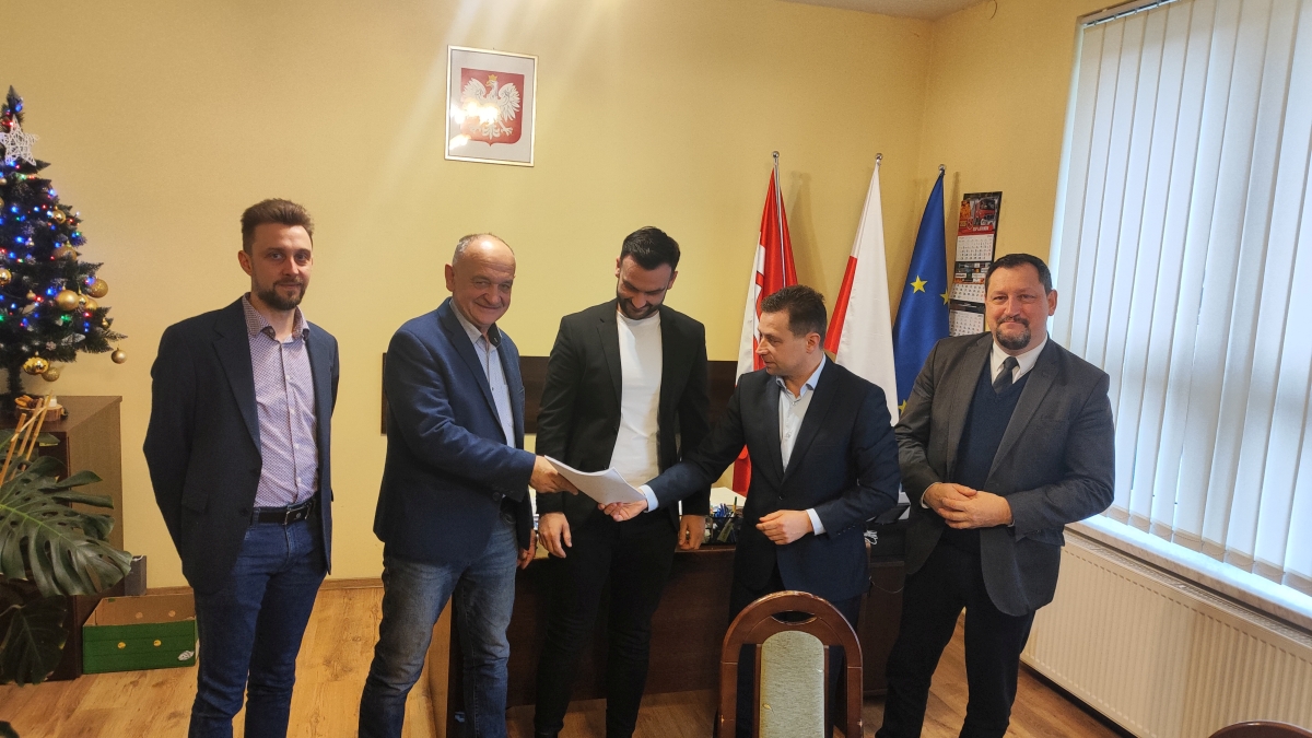 Umowę z firmą SAMSON sp. z o.o. podpisano 28 listopada 2025 r., natomiast umowę z firmą BUDOLEX sp. z o.o. – 29 grudnia 2025 r. Umowy podpisywane były w obecności Dyrektorów 3 placówek oświatowych Pani Małgorzaty Kaciczak – Dyrektora Szkoły Podstawowej w Sobolowie, Pani Doroty Twaróg wz. Dyrektora Publicznego Przedszkola w Łapanowie oraz Pana Mateusza Dudzika – Dyrektora Szkoły Podstawowej w Łapanowie. Przy podpisywaniu umów obecny był też Pan Wicestarosta Ryszard Drożdżak, który wspierał merytorycznie gminę Łapanów w zakresie pozyskania środków z w/w programu.