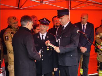 Przekazanie sprzętu zakupionego przez Gminę Łapanów w ramach Programu Ochrony Ludności i Obrony Cywilnej