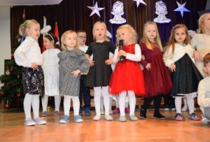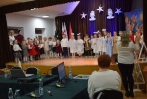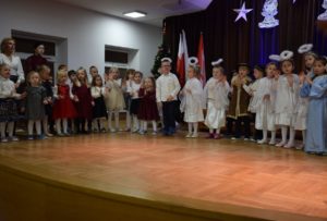 Na zakończenie wydarzenia odbyło się wyjątkowe przedstawienie, które zaprezentowały dzieci z Publicznego Przedszkola w Łapanowie. Przedszkolaki zaprezentowały wzruszający występ, pełen radości i świątecznego ducha, który dodał temu spotkaniu jeszcze bardziej magicznej atmosfery. Po występie Wójt Gminy z Przewodniczącym Rady Gminy złożyli podziękowanie dla grupy przedszkolaków obdarowując ich słodkim poczęstunkiem.