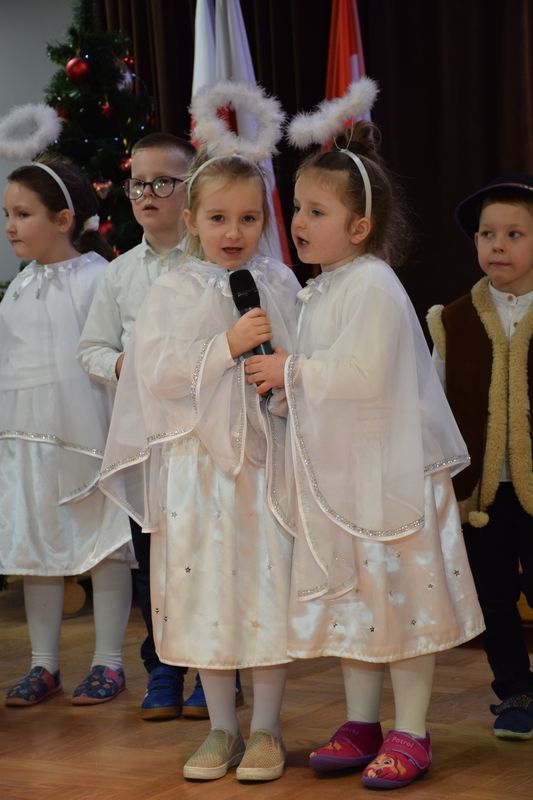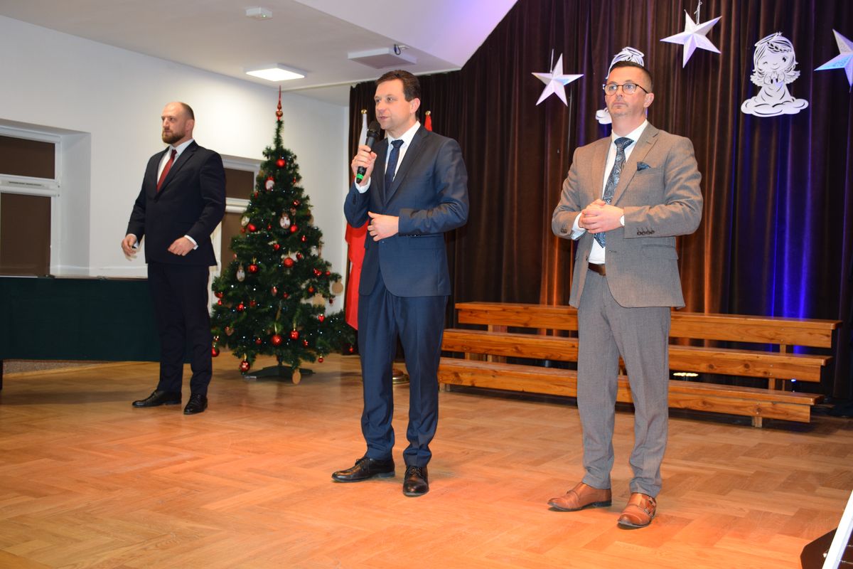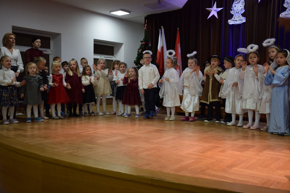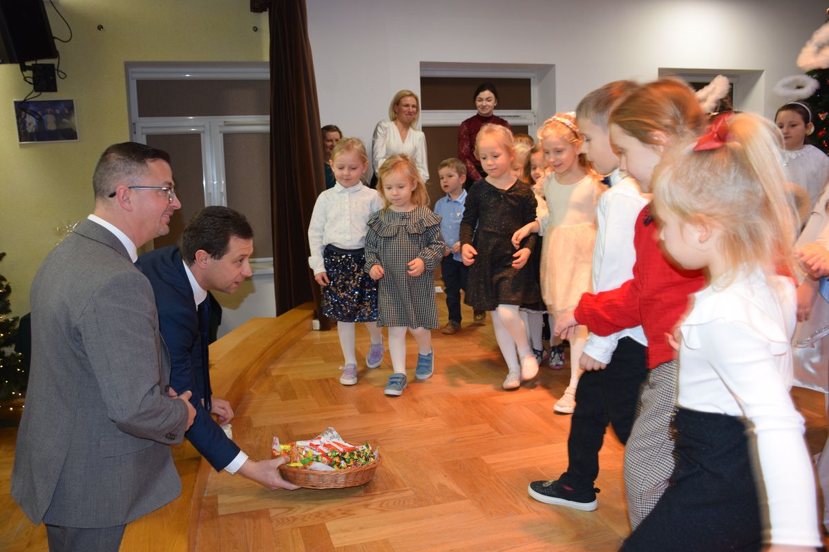 Na zakończenie wydarzenia odbyło się wyjątkowe przedstawienie, które zaprezentowały dzieci z Publicznego Przedszkola w Łapanowie. Przedszkolaki zaprezentowały wzruszający występ, pełen radości i świątecznego ducha, który dodał temu spotkaniu jeszcze bardziej magicznej atmosfery. Po występie Wójt Gminy z Przewodniczącym Rady Gminy złożyli podziękowanie dla grupy przedszkolaków obdarowując ich słodkim poczęstunkiem.