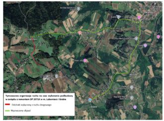 W związku z pracami związanymi z wykonaniem podbudowy i nawierzchni asfaltowych na odcinku drogi powiatowej nr 2071K w miejscowościach Grabie i Lubomierz, Powiatowy Zarząd Dróg w Bochni z/s w Nowym Wiśniczu informuje, że droga ta będzie całkowicie zamknięta dla ruchu pojazdów w dniach od 25.08.2025 r. do 29.08.2025 r. Objazd zamkniętego odcinka drogi wyznaczony został drogami powiatowymi przez Boczów, Wolicę, Łapanów i oznaczony kolorem zielonym na załączonej mapce.
