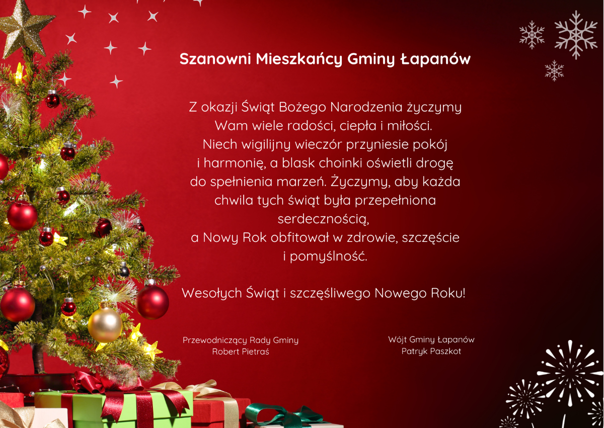 / Życzenia świąteczne i noworoczne Aktualności Życzenia świąteczne i noworoczne 23.12.2025 - Grzegorz Statek Zapisz do PDF Powrót Pomoc UkrainieBiuletyn Informacji PublicznejWażne informacjeElektroniczna Skrzynka PodawczaElektroniczny Dziennik UrzędowyMonitor PolskiDziennik UstawRodzina 500 plusOgólnopolska karta Dużej RodzinyCentralna Ewidencja i Informacja o Działalności GospodarczejWojskowe Centrum Rekrutacji w TarnowieObywatel.Gov.plBadania ankietowe w Małopolsce